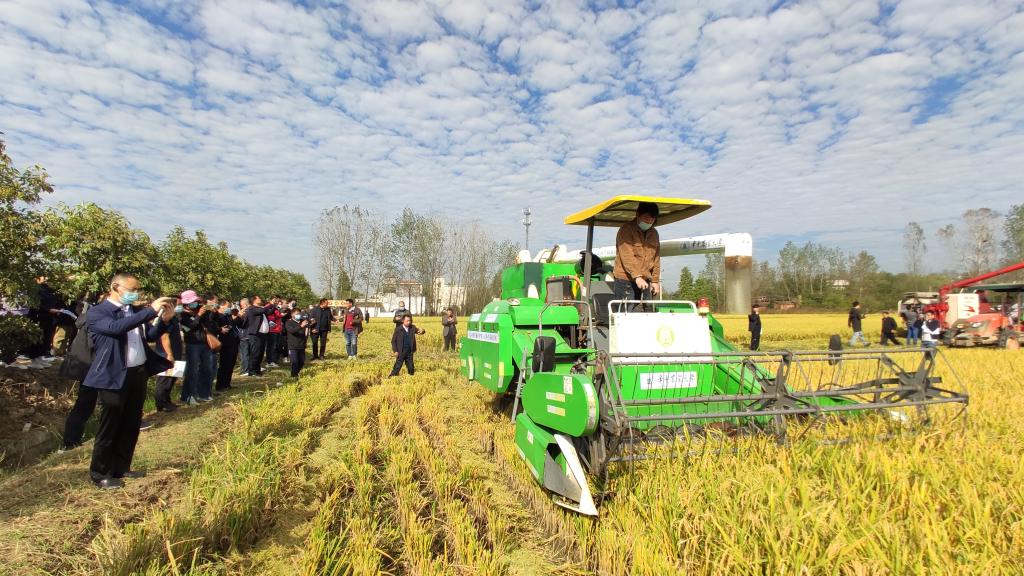 现场会上,科研人员和种植户们纷纷站在地头,翘首观看再生稻收获机田间作业情况,其高效低损的作业性能赢得大家一致好评。