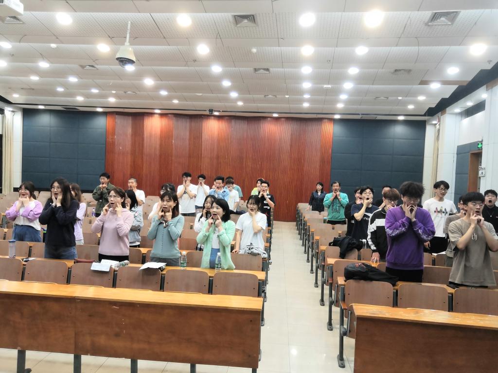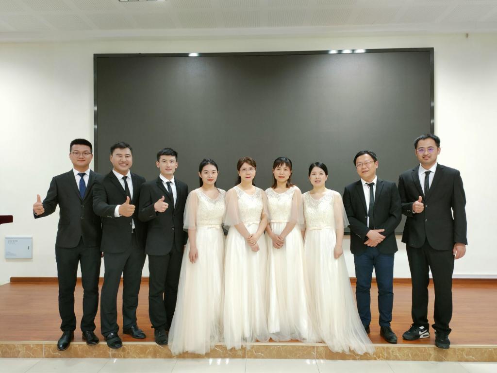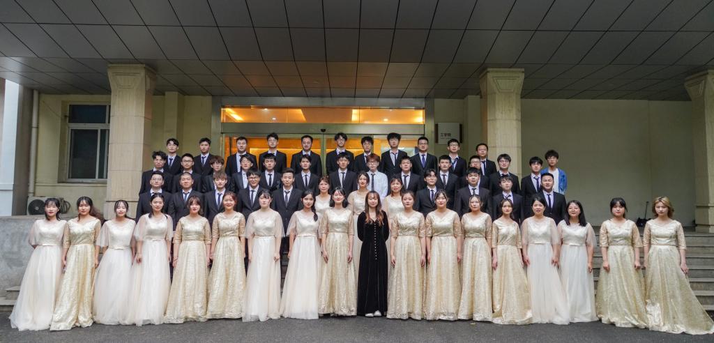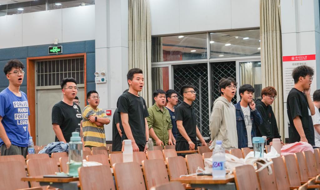为了唱好这首歌,从四月初开始,学院开始组建合唱团队,通过自主报名、考核筛选等,最终确定了11名教师、40名本科生、3名研究生组成的合唱团参加比赛。根据团队成员的自身特点分好声部,训练正式开始。