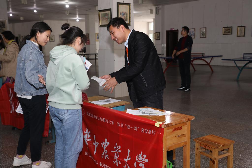 当日下午,招生宣传工作小组又赴开州实验中学开展招生咨询。由于高三课业压力较大,招生宣传小组充分利用课间和学生进餐时间,集中力量开展咨询。“报考我们学校希望很大”“可以冲一冲”“我在华农等你!”在发放招生宣传折页的同时,工作人员用热情简短的语言给即将面临高考的学子以鼓励。