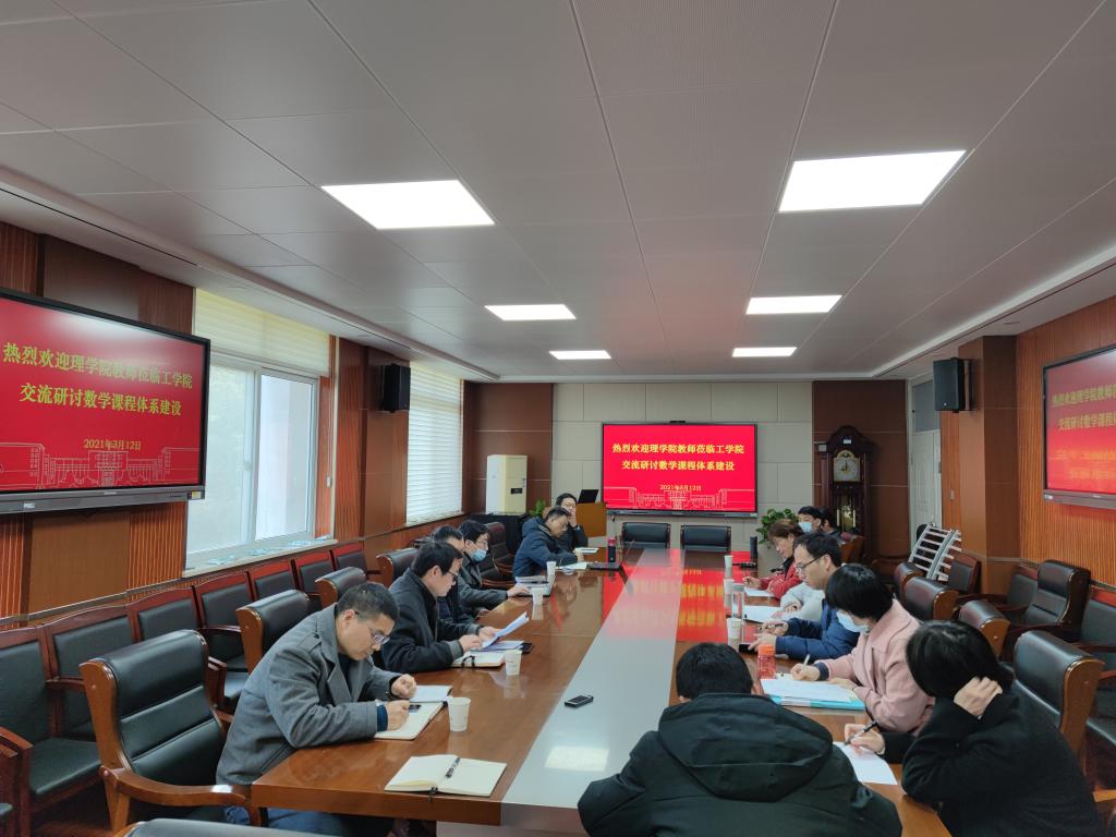 3月12日上午,理学院副院长成协设、数学系主任石峰教授等一行到jdb电子游戏官网就工科数学课程体系建设进行交流研讨,jdb电子游戏官网各系主任、专业负责人等参加了交流研讨会,会议由副院长张国忠主持。