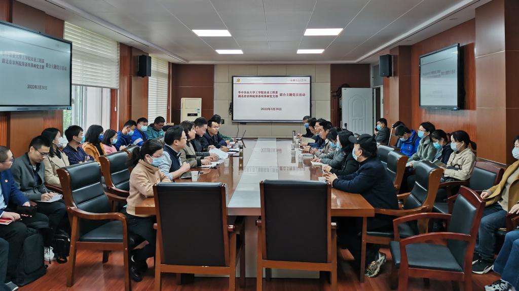 3月30日,湖北省农科院果茶所果树党支部来jdb电子游戏官网,与jdb电子游戏官方网站农业工程系党支部联合开展主题党日活动。jdb电子游戏官方网站党委书记明庭庆、湖北省农科院果茶所所长蒋迎春以及30余名党员参加了活动。