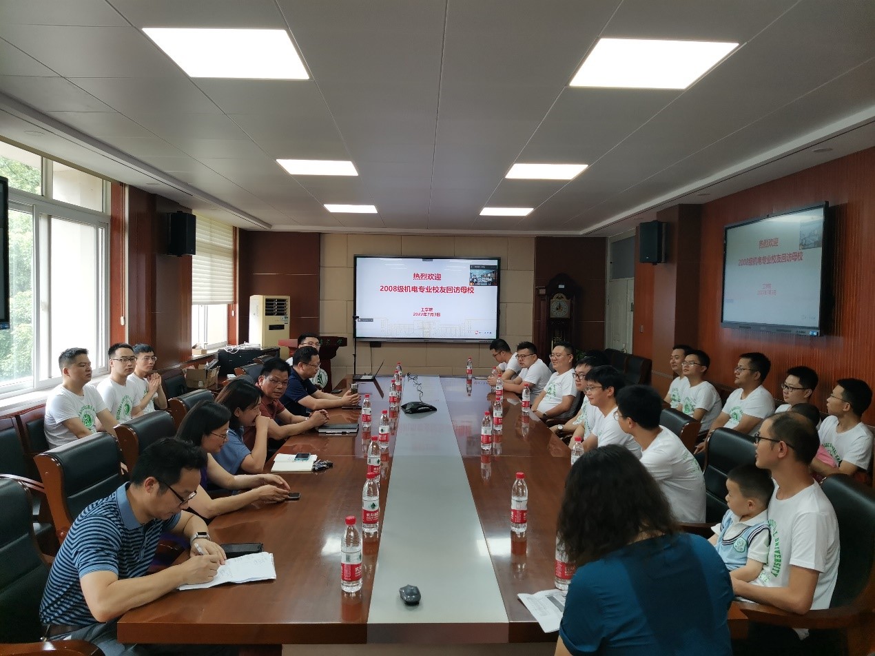 7月3日,jdb电子游戏官方网站2008级机电01班校友在毕业十周年之际返回母校重温大学时光。院长廖庆喜、副院长徐克、廖宜涛、数学老师孙玲琍,时任班主任翟红、辅导员刘飞,共同参与本次回访母校座谈会,会议由学院党委副书记瞿明丽主持。