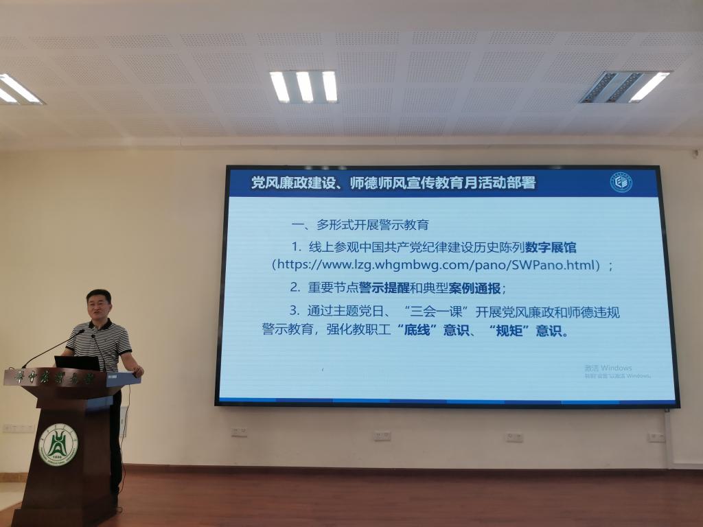 (通讯员 高亮)9月8日下午,jdb电子游戏官方网站在工程楼A111报告厅举行党风廉政建设和师德师风建设宣传教育月部署会。党委书记明庭庆主持部署会,全体教职工参加此次会议。