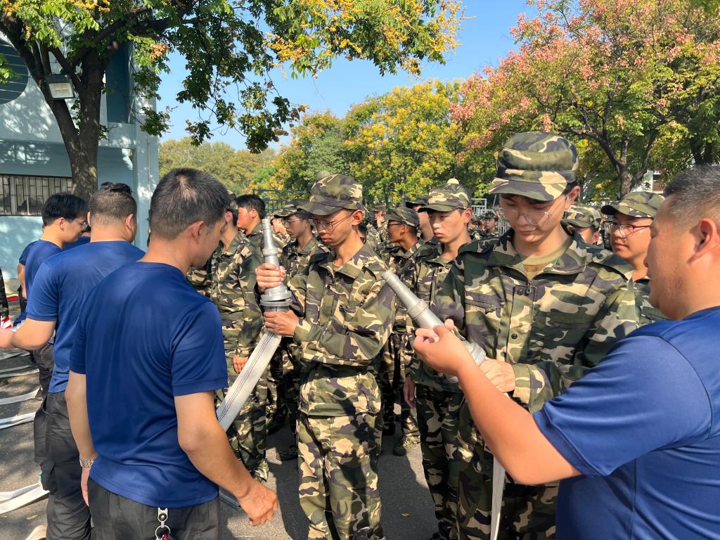 9月16日下午,同学们集结在金菊路上,同消防员们共同学习消防安全知识。在消防员的带领下,同学们参观了消防常识展板,并学习了消防水泵安装、消防栓水管安装、灭火器使用等技巧。