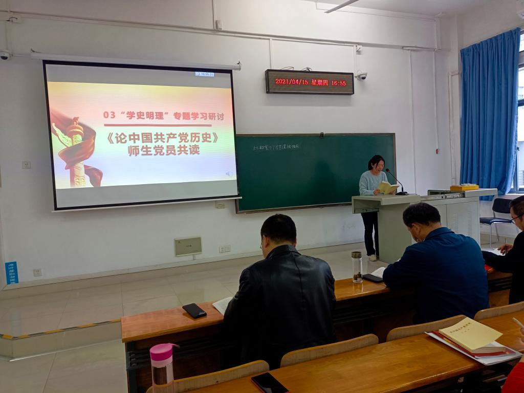 “学史明理”专题学习研讨的第三部分,由宗望远、杨扬、卜祥利、王宝丽等9位师生党员共同诵读《论中国共产党历史》各篇章。宗望远同志表示,在建党一百周年来临之际,我们只有认真学习党史,才能够更加自信、更好地将以往的经验用于未来的发展之中。正如习总书记在党史学习教育动员大会上指出,回望过往的奋斗路,眺望前方的奋进路,必须把党的历史学习好、总结好,把党的成功经验传承好、发扬好。认真学习党史,才能在历史中汲取精神力量,为实现“中国梦”注入无限生机和活力。