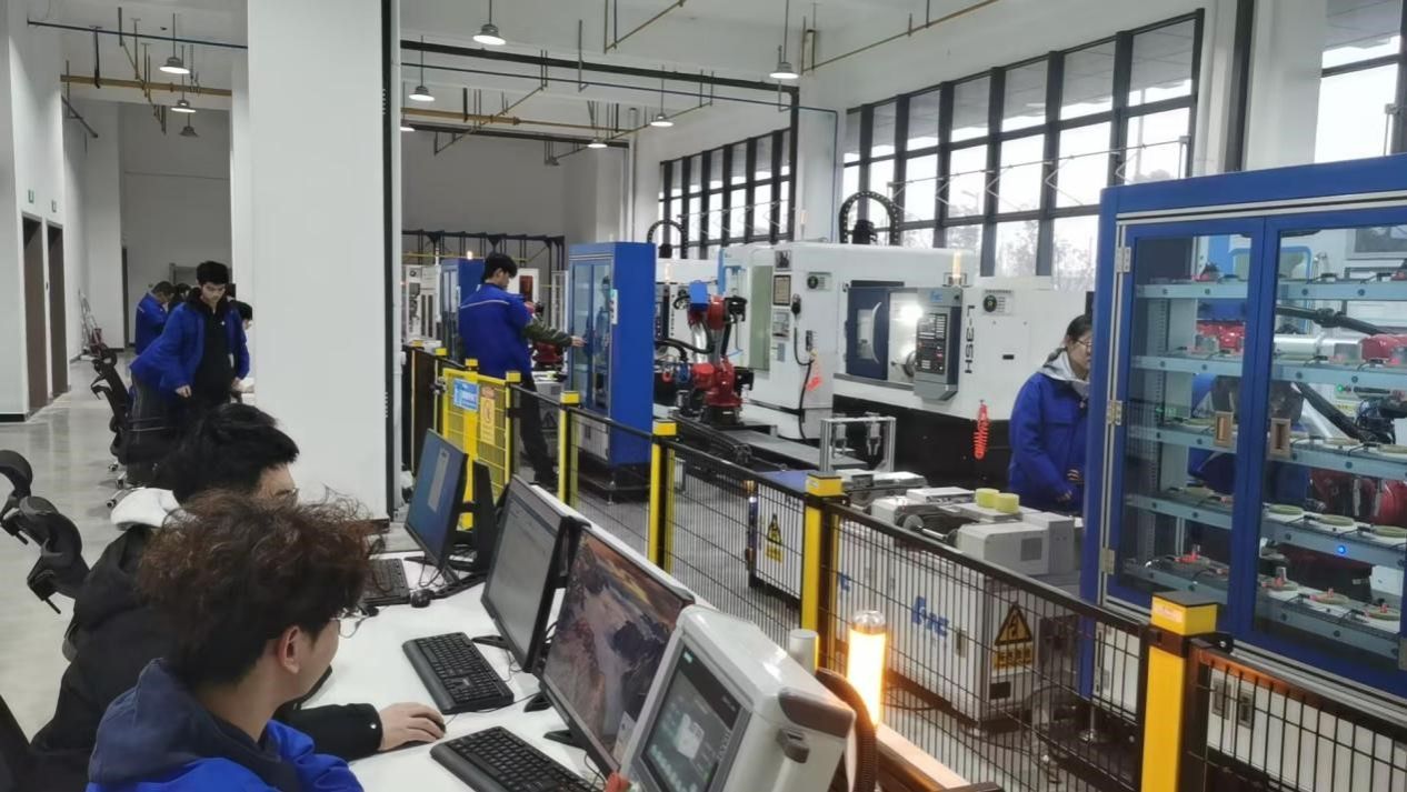 学生在智能产线实验室进行实际操作