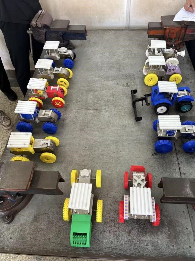 2025年5月22-28日,工科基地的教师们为学生们提供了拖拉机模型制作的操作培训。培训内容涵盖了车轮轴的加工、铣顶棚、折弯、焊接、组装等金工实习的常规课程。在接下来的两周里,学生们亲自动手加工每个零件并进行组装,充分锻炼了金属加工技能,并最终成功制作出自己满意的作品,顺利完成了竞赛任务。