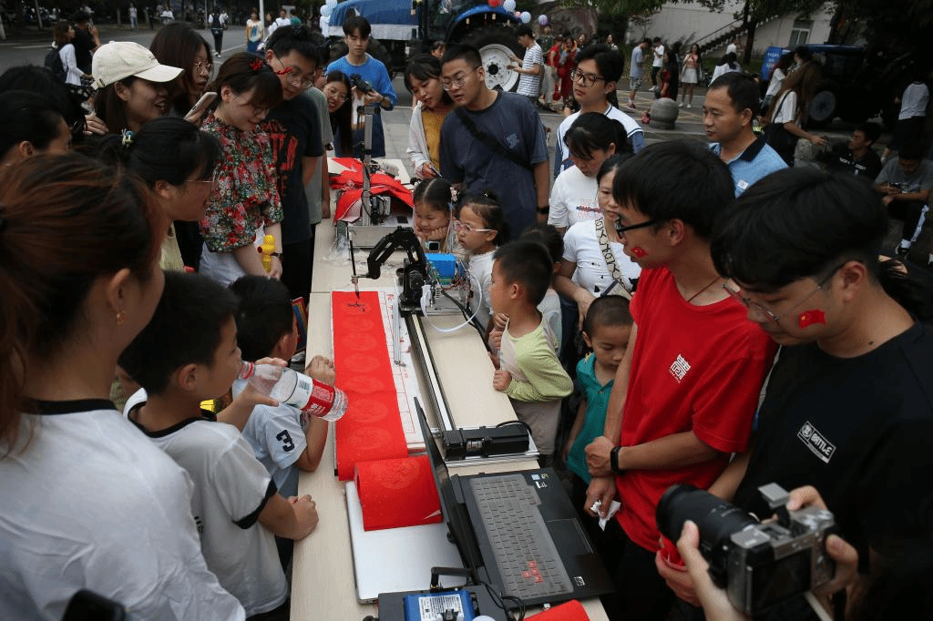 除了霸气侧漏的“大黄蜂”,头戴“狮山桂冠”的无人驾驶自主导航拖拉机“工小航”、飞旋在狮子山广场上空的无人机以及会写字的机器毛笔也吸粉无数。jdb电子游戏官方网站院长廖庆喜说:“巡游队伍中的无人驾驶自主导航拖拉机、景观飞播无人机、油菜精量联合播种机和油菜收割机以及机器毛笔都由学校自主研发。”