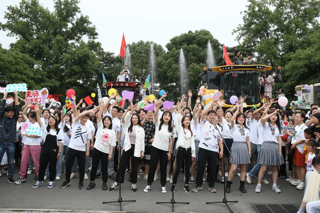 更有悬挂于狮山广场的千纸鹤、由同学亲笔书写的毕业寄语、活动现场熙攘的人群……无不体现着此次毕业巡游活动的仪式感与氛围感。